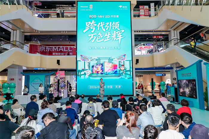海信联合京东发布RGB‑Mini LED4月30日,“跨代引领 万色生辉”海信电视春季新品发布会在京东MALL(天津南开店)举办。以沉浸式曲